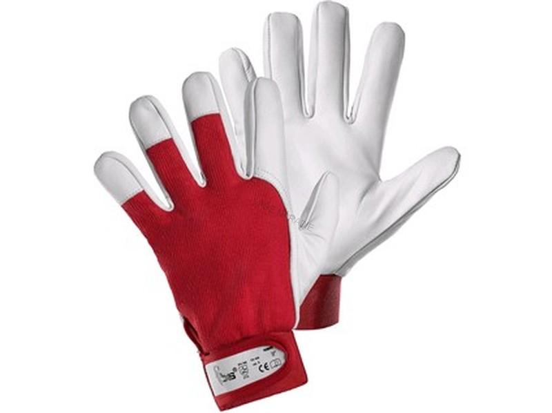 Pracovné rukavice Pelican RED s dlaňou z kvalitnej kozinkovej lícovky, chrbátom z bavlneného úpletu a so suchým zipsom na zápästí.