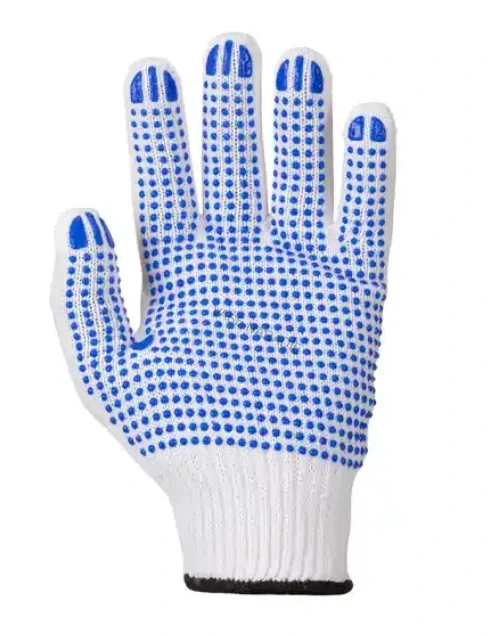 Pletené bezšvové textilné rukavice s pružnou manžetou z polyesteru s PVC terčíkmi v dlaňovej časti, ktoré zabezpečujú lepšie a istejšie uchopenie predmetov pri práci