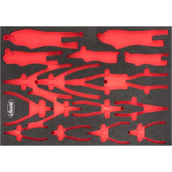 • 2K-mäkká penová vložka. • Rozmer vložky / veľkosť zásuvky: L (563 x 393 x 35 mm). VIGOR 2komponentné vložky z mäkkej peny. • Ľahko sa čistí: umyte pod tečúcou vodou a nechajte uschnúť. • Chýbajúce náradie zistíte okamžite vďaka červenej priehlbine. • Všetko je na svojom mieste – perfektný poriadok. • Vďaka nekĺzavému uloženiu je náradie dobre chránené. • Každý nástroj má svoje vopred definované miesto. • Odolnosť voči olejom a tukom. • Rozmery / dĺžka: 563 mm x 393 mm x 35 mm .